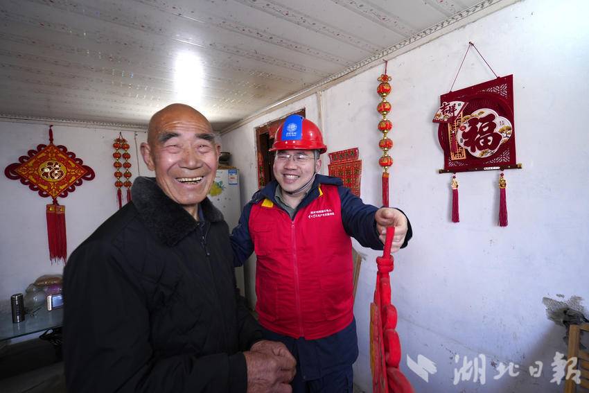 湖北日报讯(通讯员崔喻源)“潘叔,我们来了,最近身体还好吧!”2月11日南方小年,在随州随县均川镇富家棚村,国家电网湖北电力(随州随县)楚天星火共产党员服务队队长袁东升一边推开那扇熟悉的木门,一边高声问候。他身后,几名队员正从车上搬下大米、面粉、食用油,手里还提着红艳艳的春联、红灯笼、红辣椒挂饰和新年日历——84岁的孤寡老人潘和平,早已在门边等着他们。