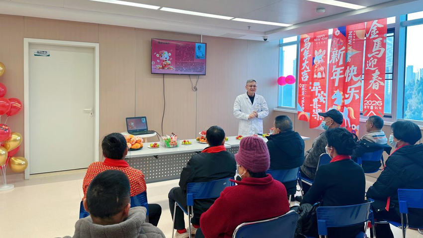 活动中,病区主任周海波代表科室医护人员向患者及家属致以新春问候,鼓励大家保持乐观心态、坚定康复信心,医患同心携手共赴安康。