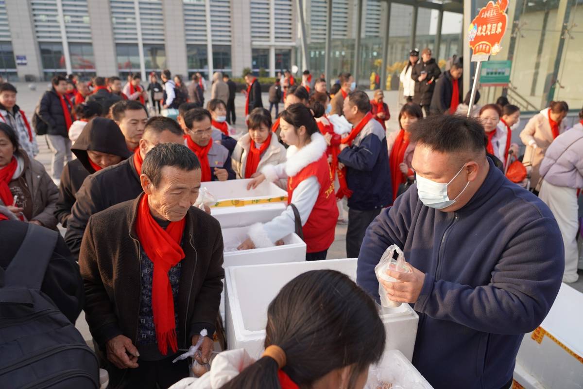 站前广场上,腰鼓欢腾、舞狮喜庆,家乡用热气腾腾的早餐和“爱心礼包”迎接归人。在深圳务工十余年的苏小云感叹:“看着家乡这么热情欢迎我们回来,心里暖意融融。”