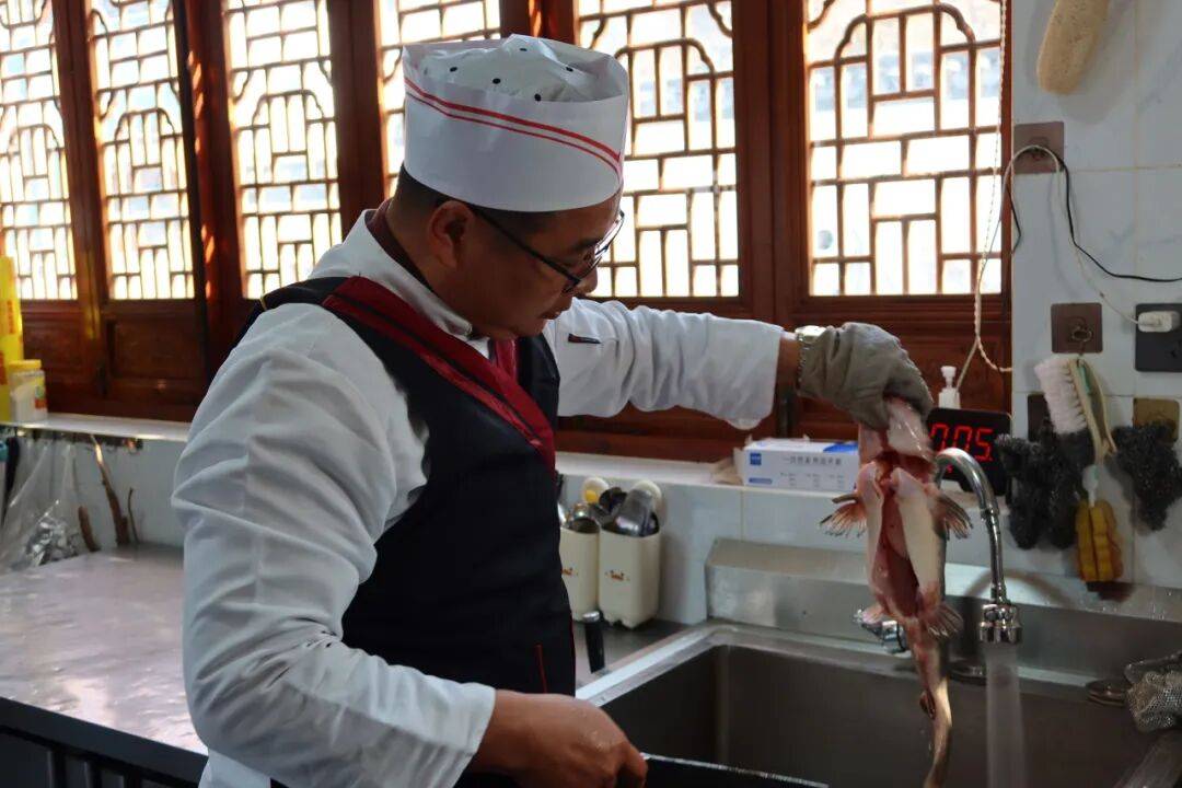 厨房里,老板赵华林将一条鲜活的肥鱼改刀,放进蒸锅。不一会儿,鲜香裹着热气扑鼻——这盘鱼,是赵家几十年来“团年饭”必不可少的主菜。