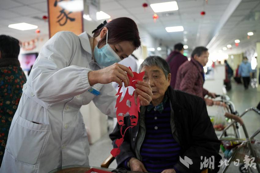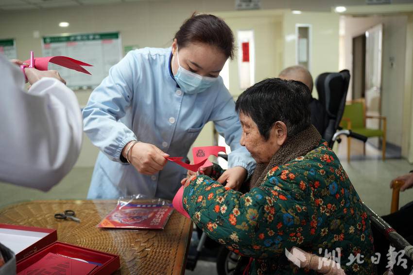 湖北日报客户端讯(通讯员 蒋文婷)红纸翻飞剪出吉祥福字,笑语欢声套中来年好运。2月13日上午,枝江市中医医院医养中心多功能活动室内暖意融融,一场以“瑞马迎春·温情相伴”为主题的春节趣味嘉年华正在这里欢乐上演。近百位在住老人与医护人员、志愿者欢聚一堂,在套圈、猜谜、剪纸等传统年俗活动中感受浓浓年味,共同迎接丙午马年的到来。