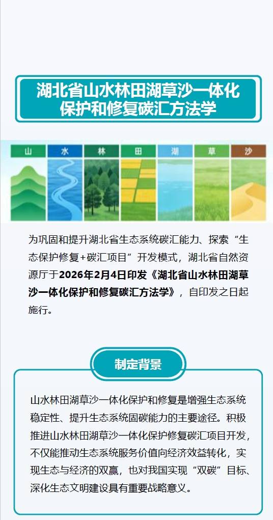一图读懂|《湖北省山水林田湖草沙一体化保护和修复碳汇方法学》