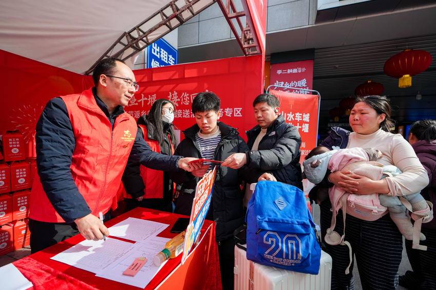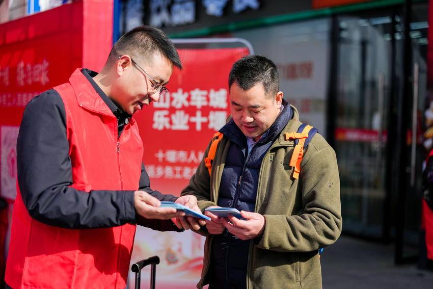 除了暖心接站服务,活动现场还同步开展了人社政策宣讲、返乡人员留堰就业创业意愿摸排等服务。展架上,全市创业园区风貌、就业扶持政策、重点企业招聘信息一目了然,不少返乡人员驻足观看,向工作人员咨询留堰就业创业的相关政策。“要是老家有合适的机会,我也不想再出去奔波了,先了解下情况,看看能不能在家门口创业。”来自房县的青年小周拿着宣传资料说道。