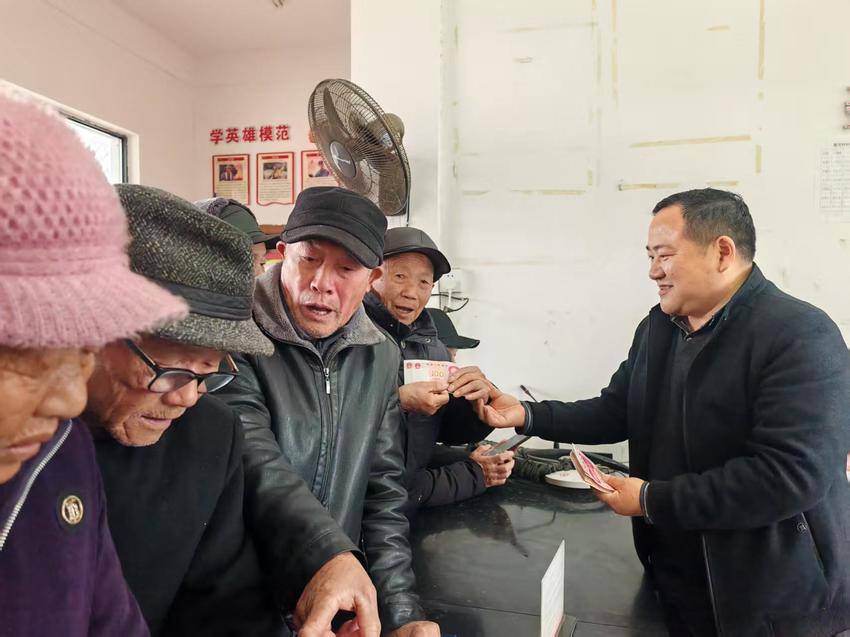 湖北日报客户端讯(通讯员 谢岳成)2026年2月13日下午,湖北济安堂药业集团有限公司董事长陈国平,来到家乡监利市柘木乡聂河村,向村里400多名70岁以上的老人和村里逸养敬老院老人发放过年“红包”并送上新春的祝福。这已是陈国平连续13年来给村里的老人们发放过年红包。