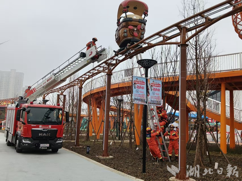 湖北日报客户端讯(通讯员项颖)春节来临,各类游乐场所都迎来客流高峰,安全防范工作刻不容缓。为进一步夯实人员密集场所应急救援基础,提升突发险情快速响应能力,近日,孝感市消防救援支队高新大队走进天保儿童梦乐园,开展了一场全流程、实战化的应急救援演练。