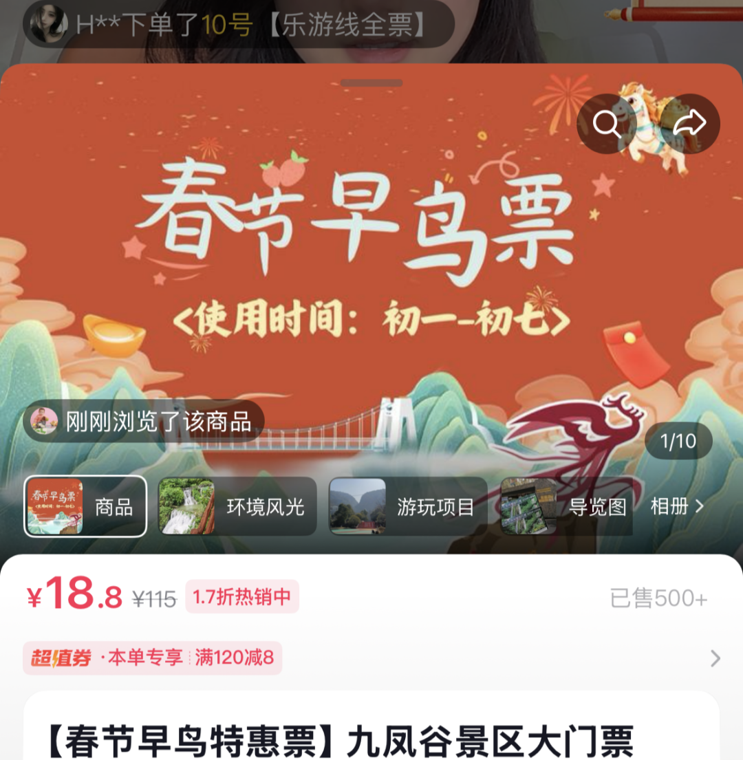 锁定“三峡九凤谷景区”官方抖音直播间