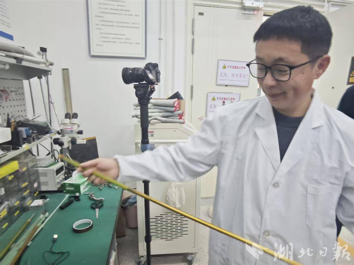 韩一波教授讲解样品杆构造。湖北日报全媒记者 张歆 摄