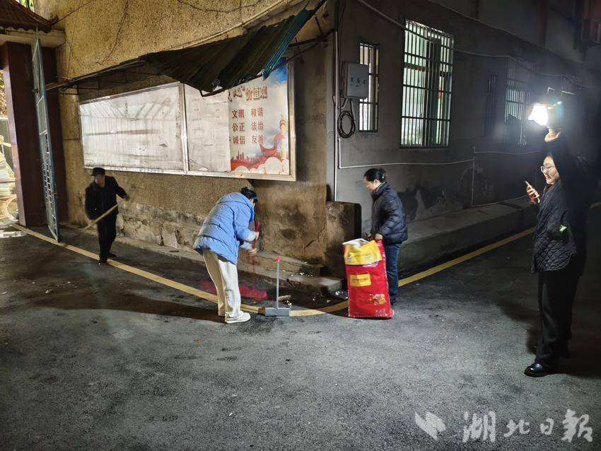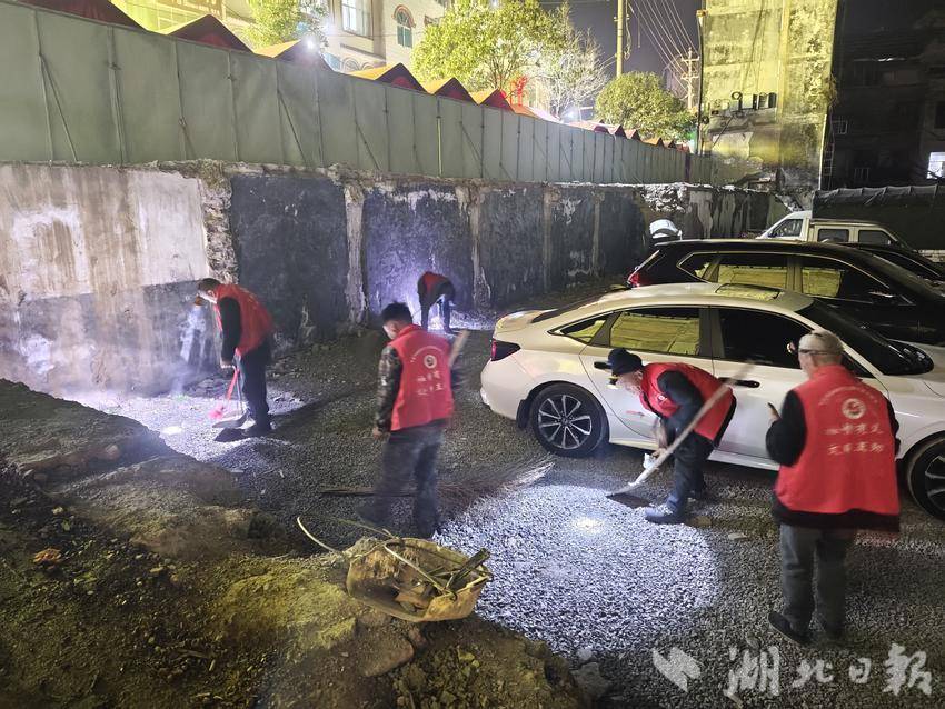 夜幕下,志愿者们手持扫帚、垃圾袋、铲子等工具,分组包片细致清扫。落叶、烟头、塑料瓶等杂物被一一清理,楼道角落、围墙根部、排水沟等卫生死角逐个排查整治。工作人员还用铲子清除小广告,用抹布擦拭公共设施,集中清运多处堆积的废弃家具。
