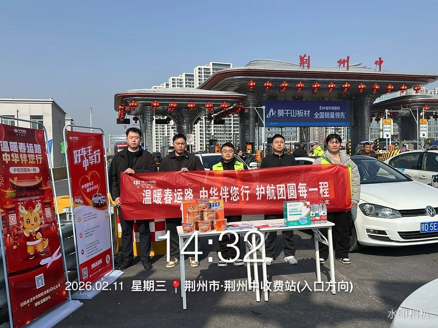 自2月1日起,中华财险湖北分公司正式启动“中华护航,温暖春运”专项服务行动,在全省高速、火车站、客运站等重点区域设立17个护航服务站,悬挂“中华护航 温暖春运”红色横幅,配备查勘车辆、便民物资及专业服务团队,为过往车主提供免费胎压检测、简易故障排查、路线咨询等暖心服务。