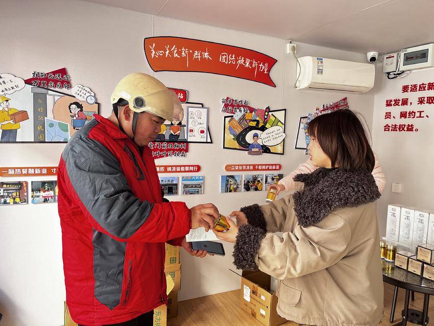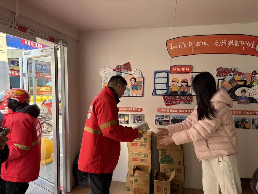 “春节订单多,跑单间隙能来驿站充个电、热口饭,太方便了!” 外卖骑手李女士表示,以往春节值守只能在路边将就,如今驿站成为随时可停靠的 “温馨港湾”。据了解,为保障春节服务质量,驿站提前完成设施检修与物资补充,并安排专人值守对接需求,让服务既有温度又有力度。