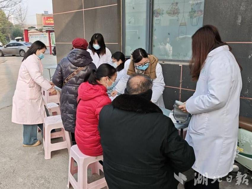 2月13日,钟祥市莫愁湖社区卫生服务中心开展返乡人员免费健康体检专项活动,为返乡群众送上新春健康保障。