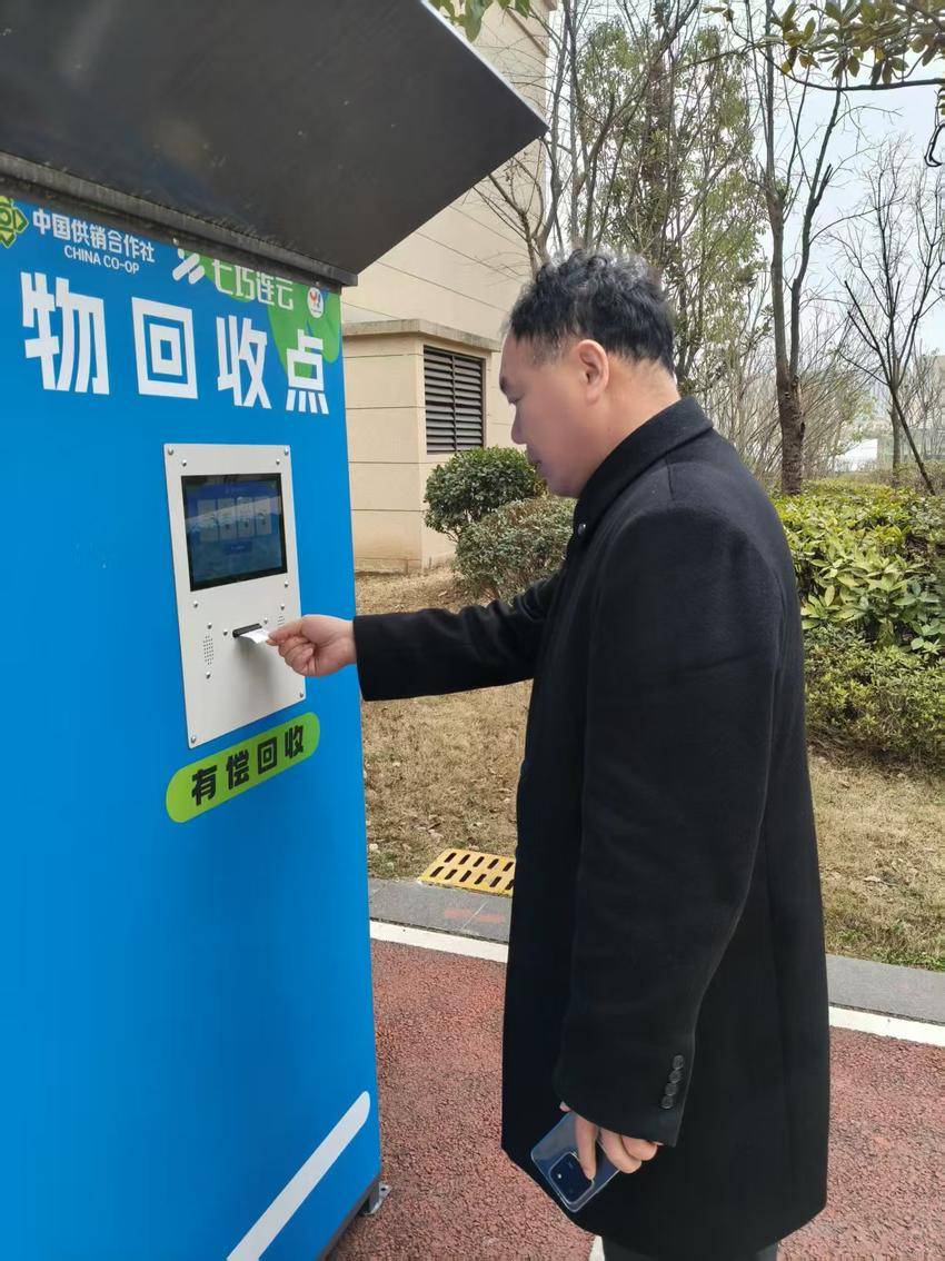 为提升可回收物资源化利用效率,园区率先在居民小区布局智能分类设施,投放10处智能可回收物投放箱。居民通过扫码、投放等简易操作即可完成可回收物处置,七巧连云公司定期回收称重后,系统自动结算金额返款至用户微信钱包,实现 “垃圾变现” 与低碳环保的双向共赢。智能设备的投用不仅简化了分类流程,更通过数据化管理精准掌握回收动态,为垃圾分类精细化运营提供技术支撑。