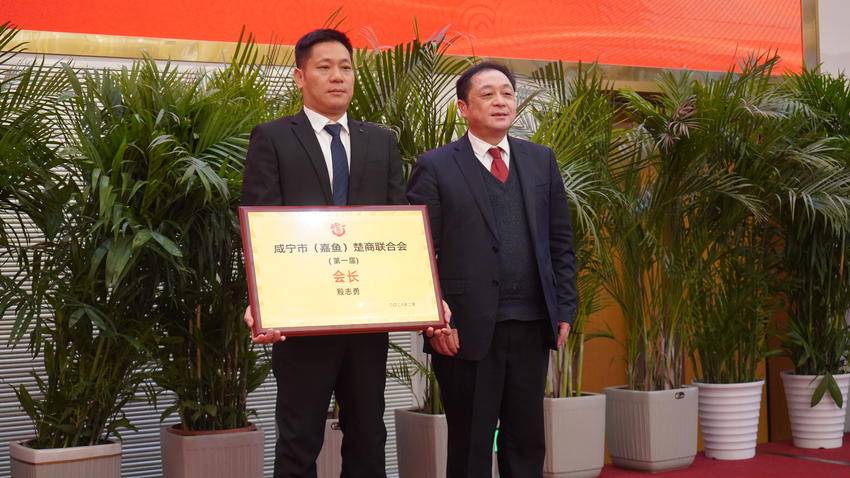 新当选的会长、湖北和润家连锁超市有限公司董事长殷志勇从咸宁市楚商联合会会长黄晖手中接过牌匾,全场响起经久不息的掌声,“接过这块牌子,就是接过一份沉甸甸的责任。我们要让联合会成为所有嘉鱼楚商的‘娘家’,让每一个在外打拼的游子都能在回家时感受到家的温暖。”