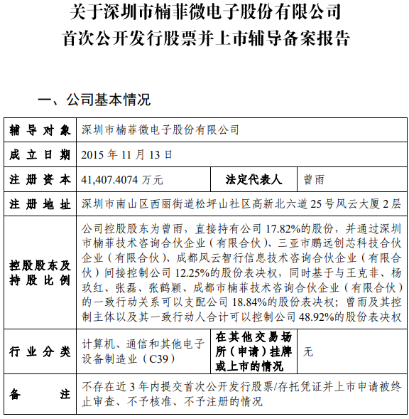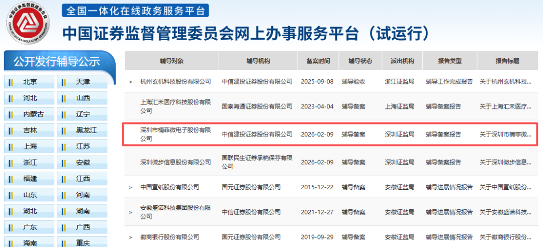 深圳市楠菲微电子股份有限公司(简称:楠菲微电子)于2026年2月9日正式完成IPO辅导备案。