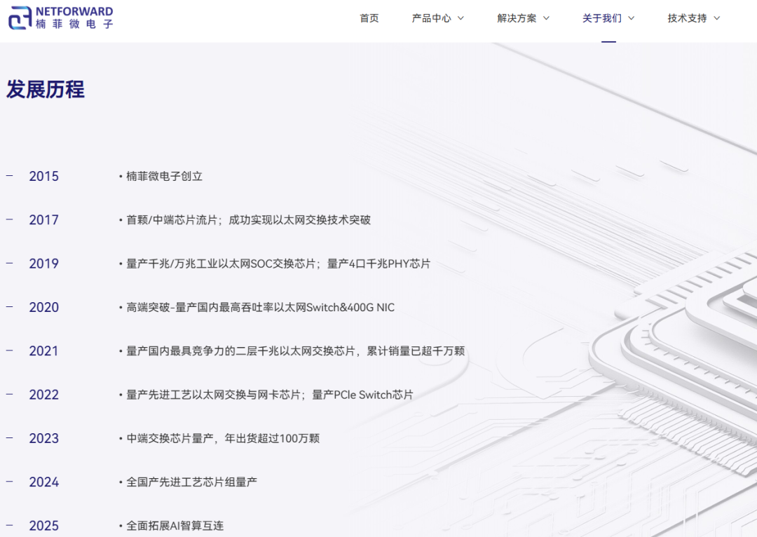 据公司官网及公开信息显示,楠菲微电子成立于2015年,总部坐落于深圳,是一家专注于以太网数据交换、智能网卡、PHY、PCIe Switch等芯片和模块的设计、生产、销售及配套服务的高新技术企业,深耕高速通信网络芯片研发设计领域,聚焦“数据交换”和“计算连接”核心赛道,助力国产芯片替代进程推进。