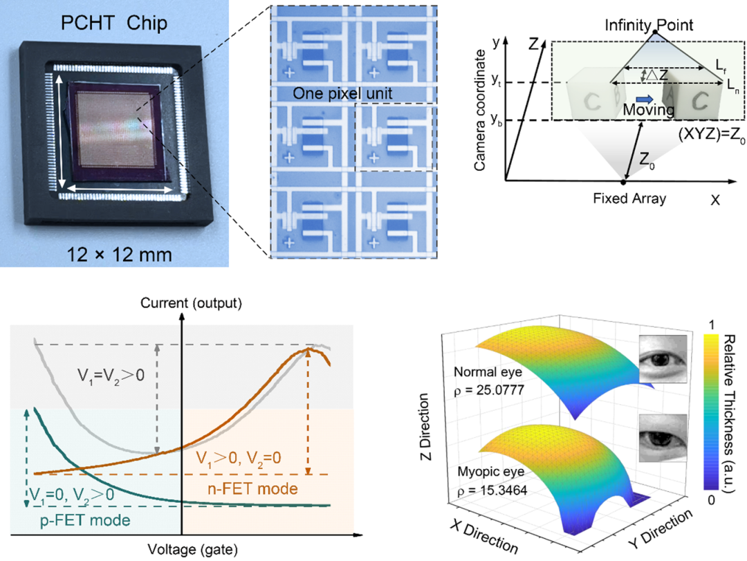 中国科学院半导体研究所王丽丽团队采用光电异质集成晶体管阵列,研制出高性能三维感知芯片。该芯片通过电调控实现器件极性转变,在传感层同步获取光强与时空视差信息,并且该芯片图像内存占用较传统CMOS传感器降低一个量级,实现多视角三维形态感知,并验证了其在角膜病变检测中的应用可行性。该成果发表于《自然·电子》杂志(Nature Electronics, 2025, 8: 46-55)。