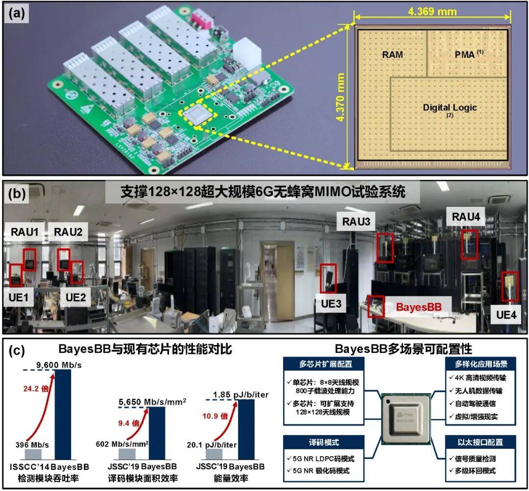 BayesBB芯片显微照片、试验系统及关键指标。