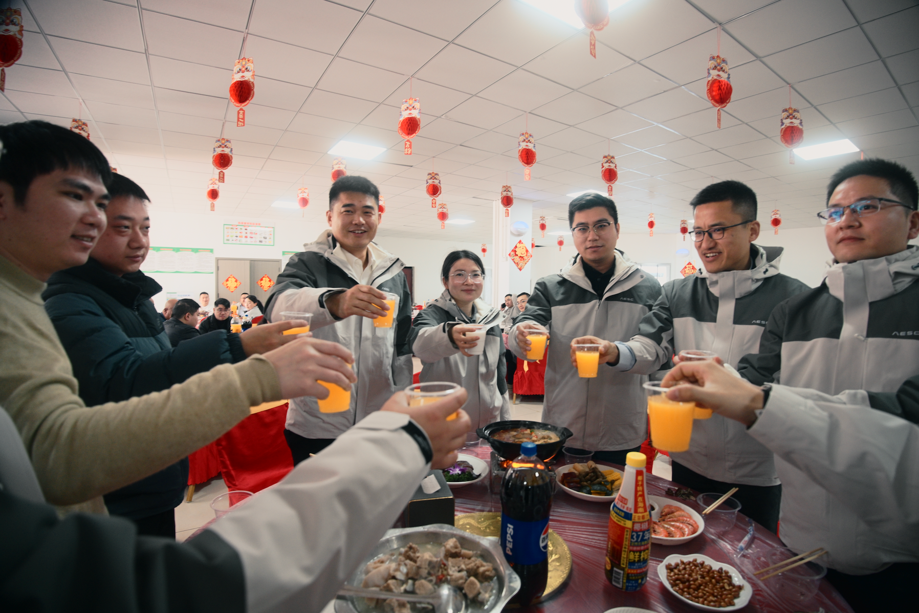 当天中午,宜昌产投产业园食堂准备了12桌饭菜,江鲇火锅、排骨炖藕、香肠牛肉,还有草莓和砂糖橘,年味十足。100多名在建项目的一线建设者和产业园、项目服务专班的工作人员一起,举杯共庆春节的到来。