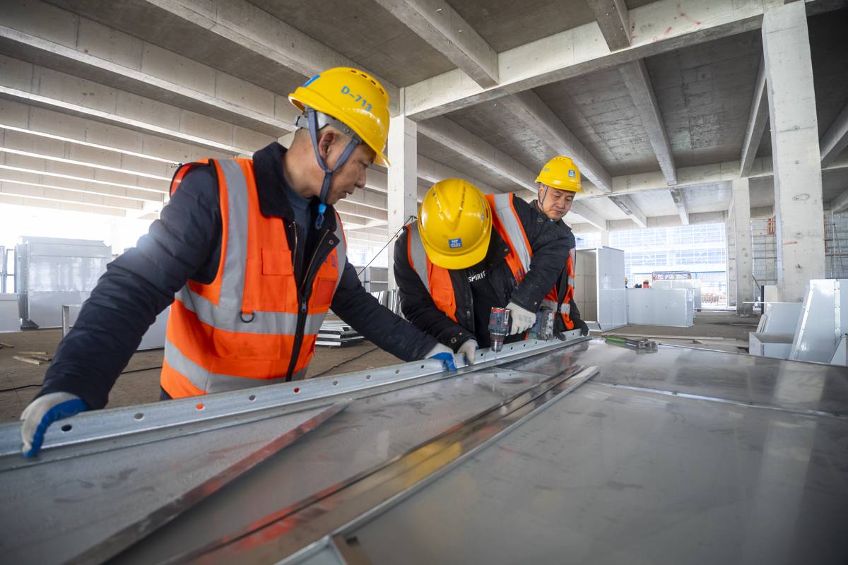 安装消防风管。 (湖北日报全媒记者 夏晓君 摄)