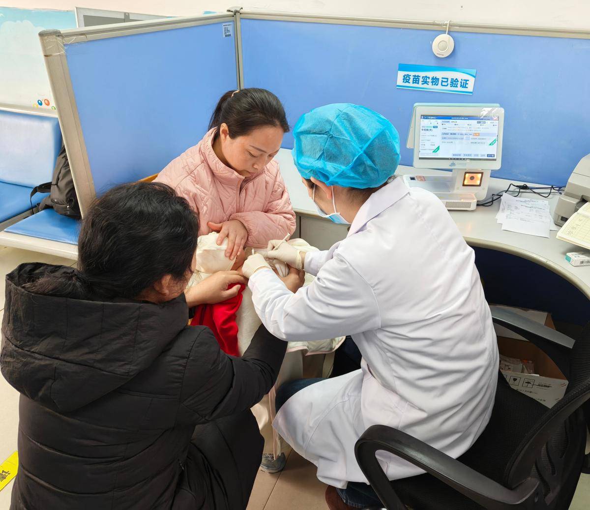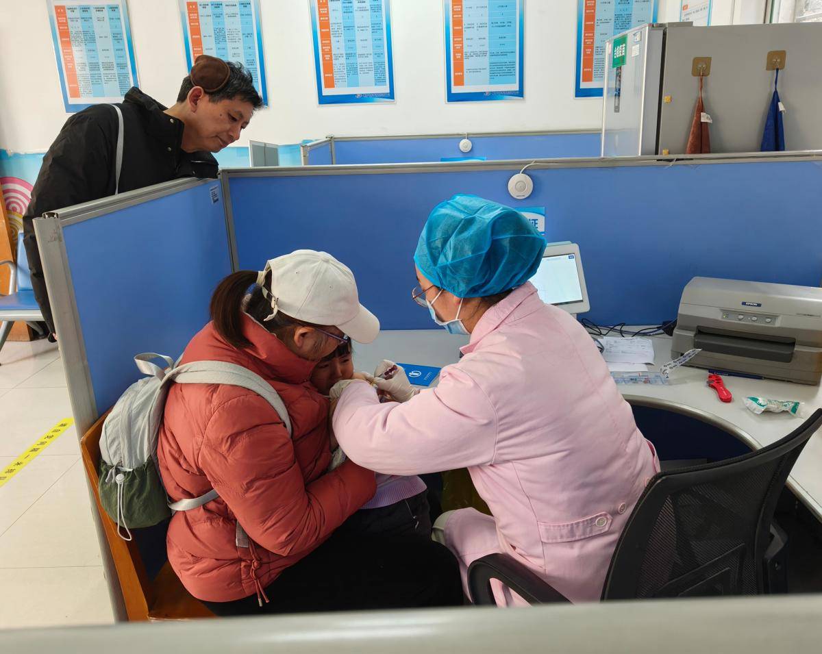 接种护士正在为患儿接种疫苗。(受访者供图)