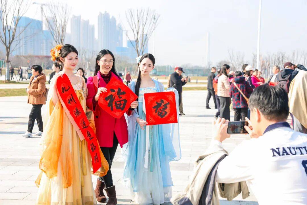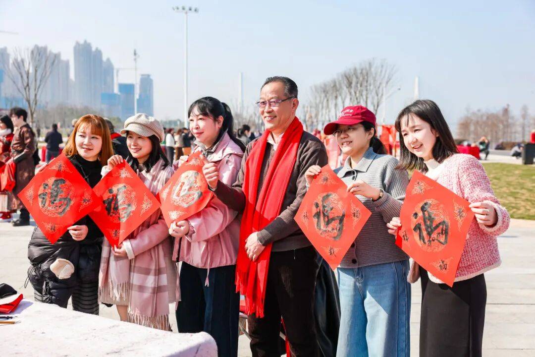 20位书法名家案前,领取手写春联和“福”字的市民早早排起了长队。墨香氤氲中,一份份独一无二、承载着美好祝愿的传统文化年礼被郑重送出。