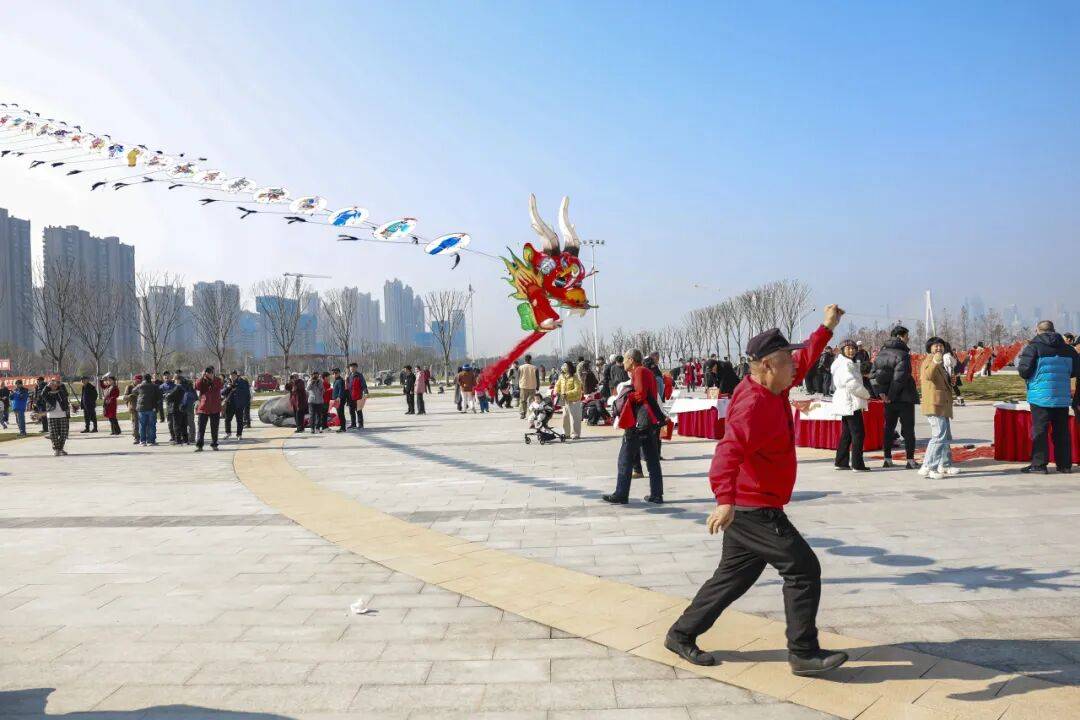 数个巨型风筝借江风之力,相继升空,在蓝天之上组成一幅动态的“骐骥驰骋图”。现场观众纷纷仰头驻足,惊呼声与快门声此起彼伏,不少人拿起手机拍摄,记录下这难得一见的空中奇观。