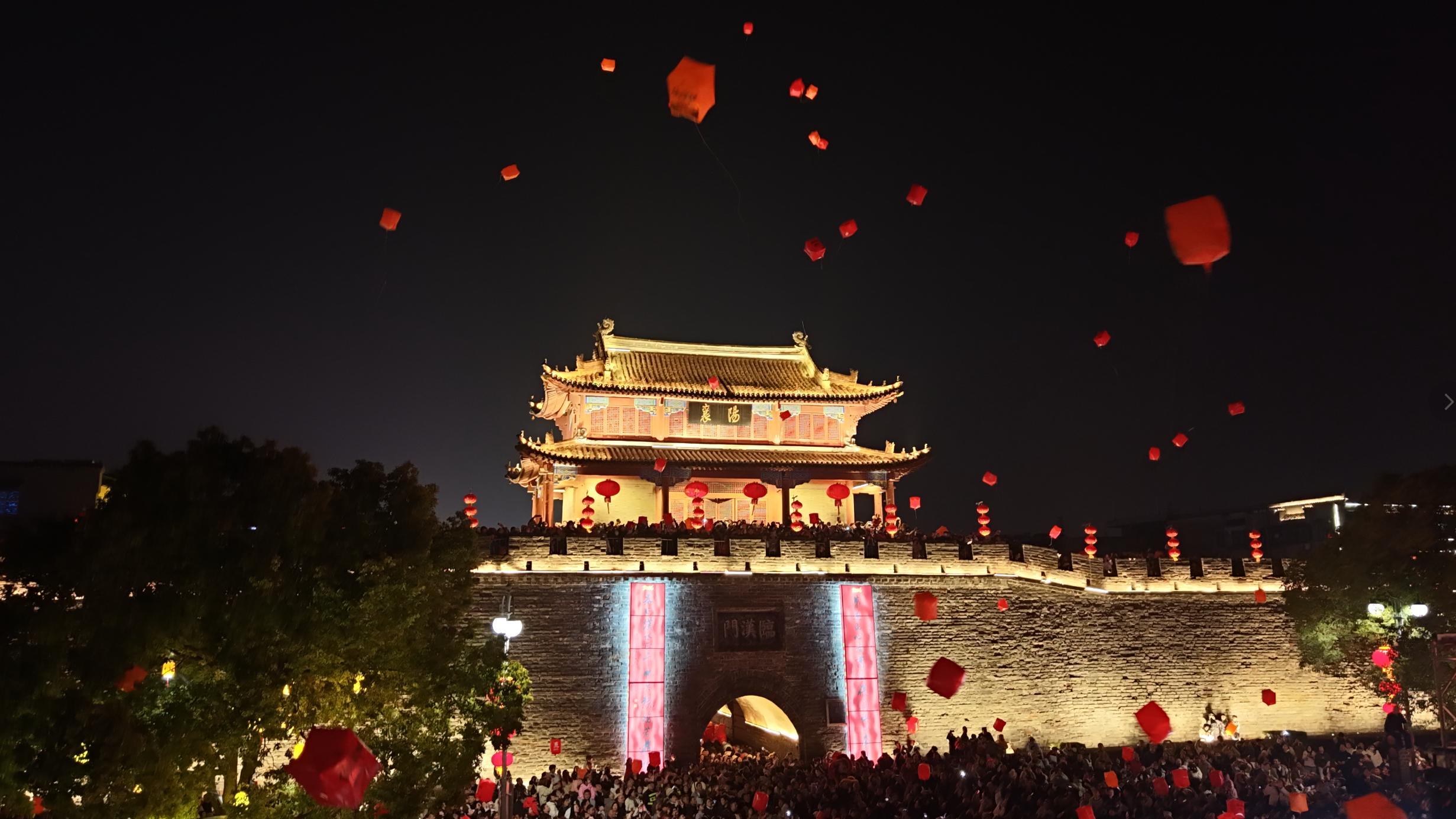 2月14日,农历腊月二十七,夜幕四合,襄阳古城墙上的红灯笼次第亮起,暖红色的光晕漫过斑驳的石板路,与江中倒影交相辉映,为这座金庸笔下的侠义之城披上了一袭节日盛装。