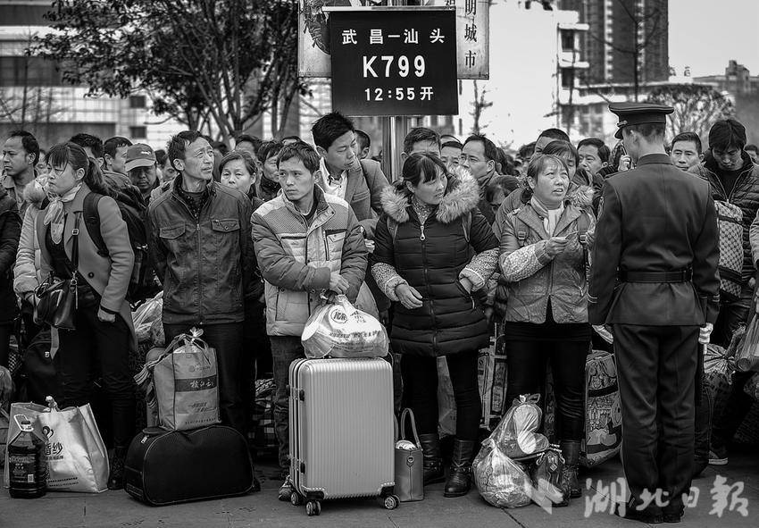 2月15日,是2026年春节期间的第一天,离家的路有千万条,而回家的路只有一条。春运记忆的核心是“车票+车厢+归心”的三重变奏——从1954年绿皮车硬板票的73万人次日均客流,到2026年预计95亿人次流动,变的是运力与技术,不变的是“有钱没钱,回家过年”的集体信仰。(湖北日报全媒 记者 朱熙勇 摄)