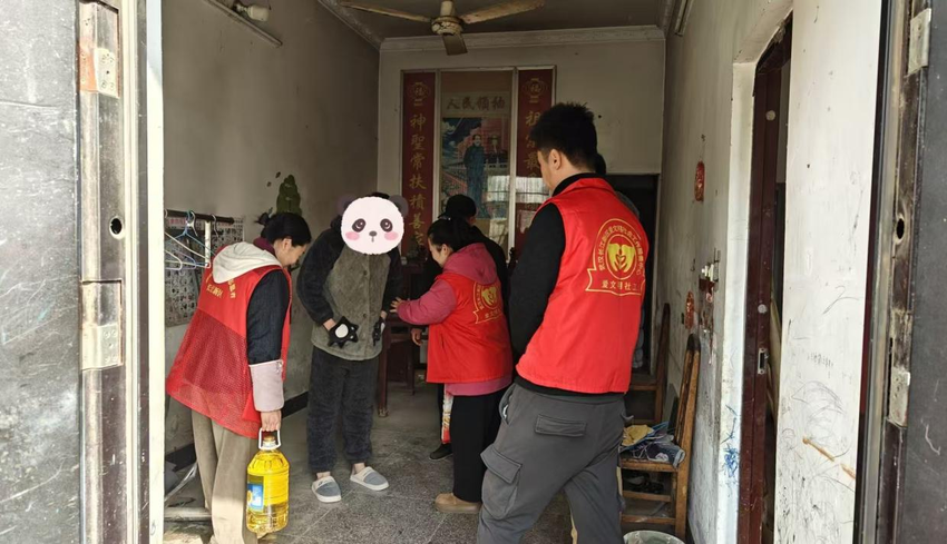 湖北日报讯(通讯员周净雅)近日,长江新区三里桥街道社工站联合武汉长江新区爱文明社会工作服务中心,携手辖区志愿者、村委工作人员共同开展春节前困境儿童家庭走访慰问活动,为辖区10余户困境儿童家庭送上米、油等生活慰问品,并向他们致以诚挚的新春祝福与关怀,用实际行动把温暖送到他们身边。