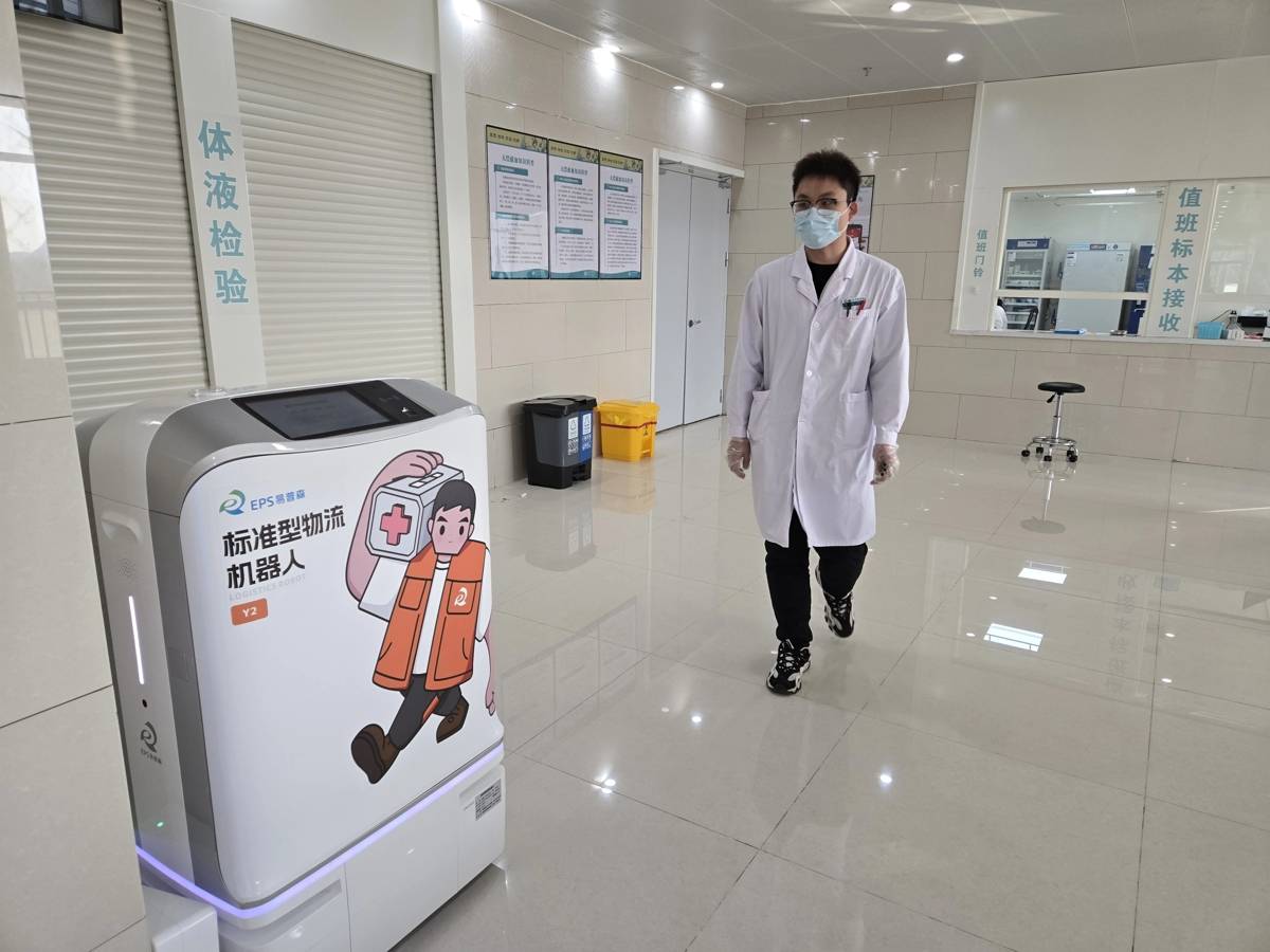 2025年12月4日,东津院区引入智能物流机器人。它们无需人工引导,依靠预设路线自主导航,能精准避让行人与障碍物,独立搭乘电梯、定点停靠,完成物资的接收与配送,24小时不间断运行。