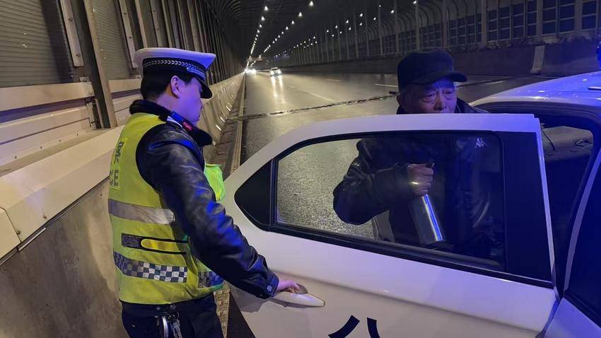 除夕夜,大队加强临江大道、过江桥梁等重点路段值守,大队长修华峰带队开展酒驾整治行动。