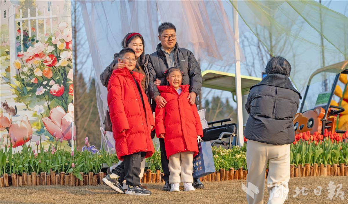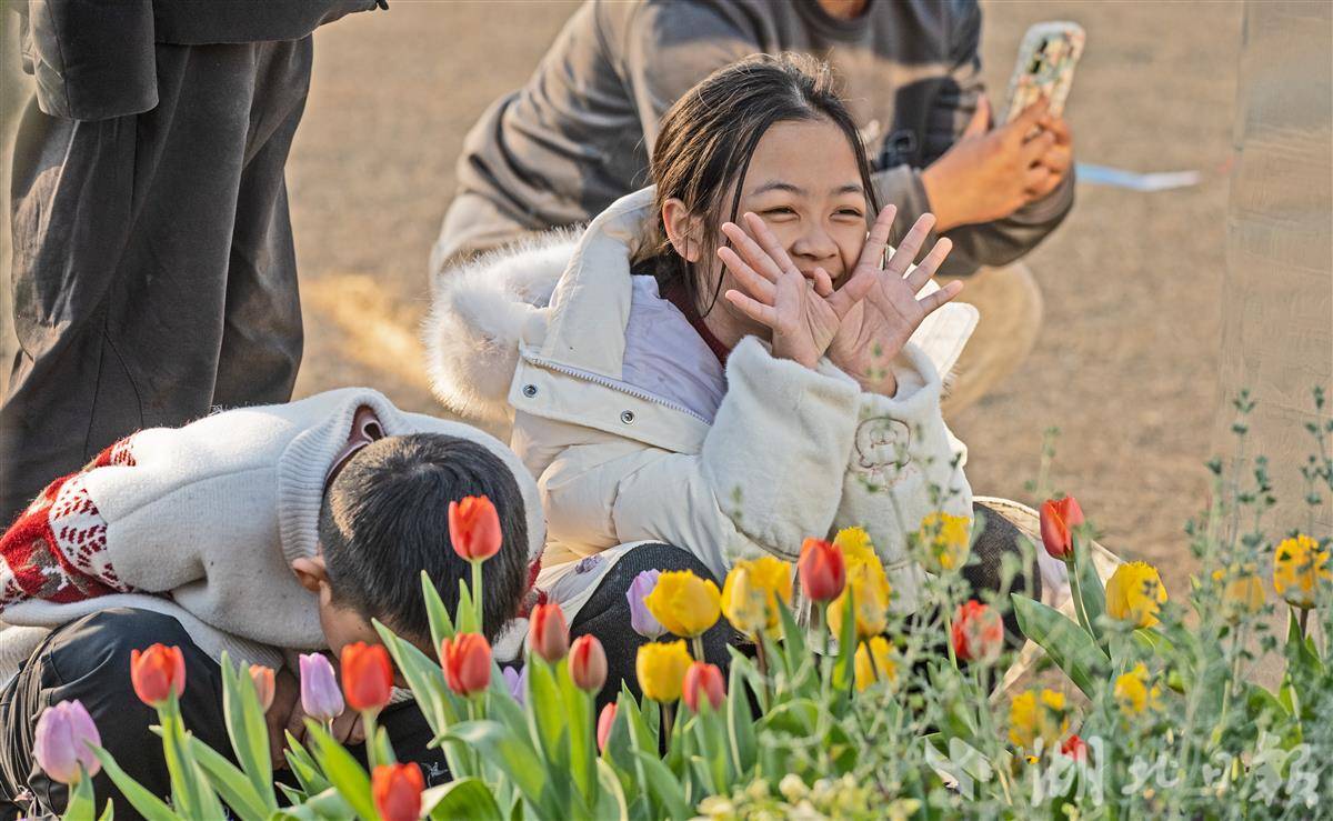 当日,湿地内暖意融融,市民们扶老携幼、结伴而行,漫步花间小径,或驻足观赏、细嗅花香,或与盛放的郁金香合影打卡,定格新春美景与团圆时光。不少家庭席地小憩,在花海旁享受休闲惬意,孩子们在花间嬉戏,欢声笑语与花香交织,为新春佳节增添了浓浓暖意与生机。