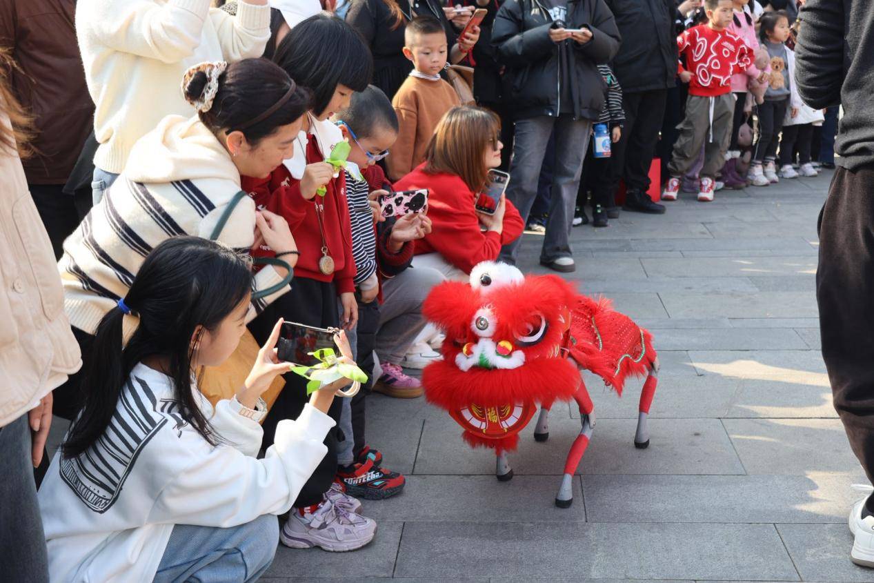 大年初一,武汉东湖绿道,同样上演着一场科技感十足的“东湖bot”——身披醒狮装扮的仿生机器狗与舞龙舞狮队伍同台竞技,让市民游客惊喜感叹:“昨晚刚在电视上看完机器人跳舞,今天就在东湖看到‘同款’,这年味儿也太潮了!”