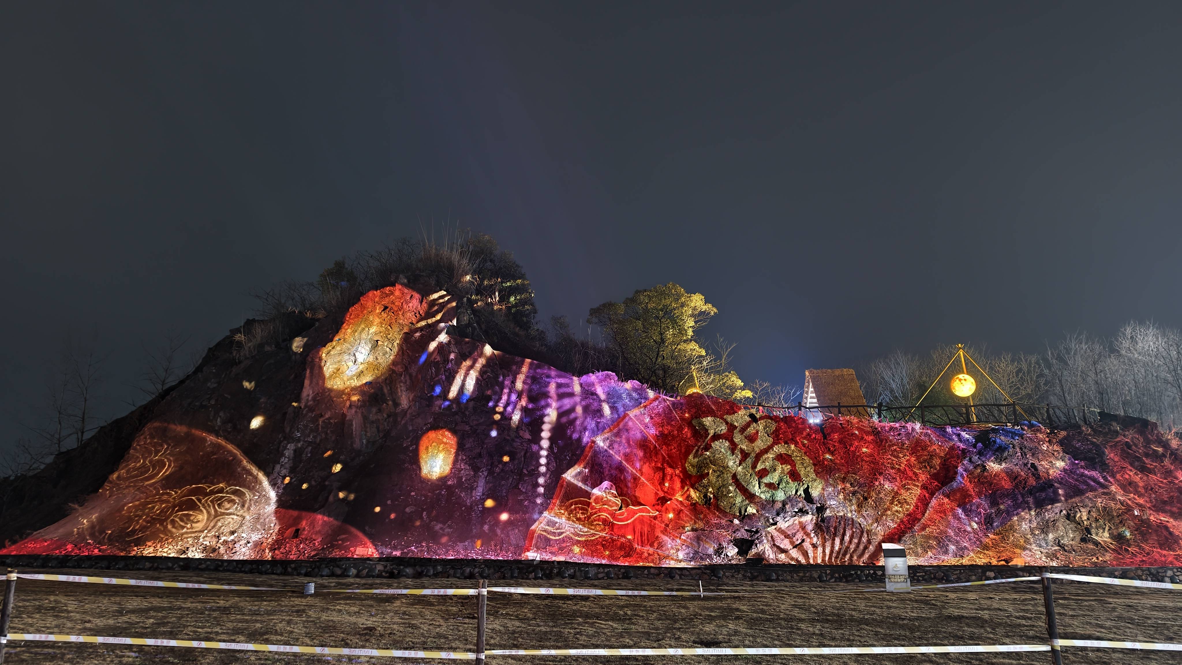 夜幕降临,铜绿山国家考古遗址公园华灯璀璨,喜气洋洋。入园处百米台阶被斑斓的灯光勾勒出轮廓,一步一景,仿佛踏入千年古矿幻境;山体3D灯光秀上,骏马奔腾的灵动身姿、“新年快乐”的喜庆字样轮番投射在山壁之上。光影流转间,千年矿冶的厚重与现代光影技术完美交融,引得游客纷纷拿出手机定格美景,赞叹声此起彼伏。