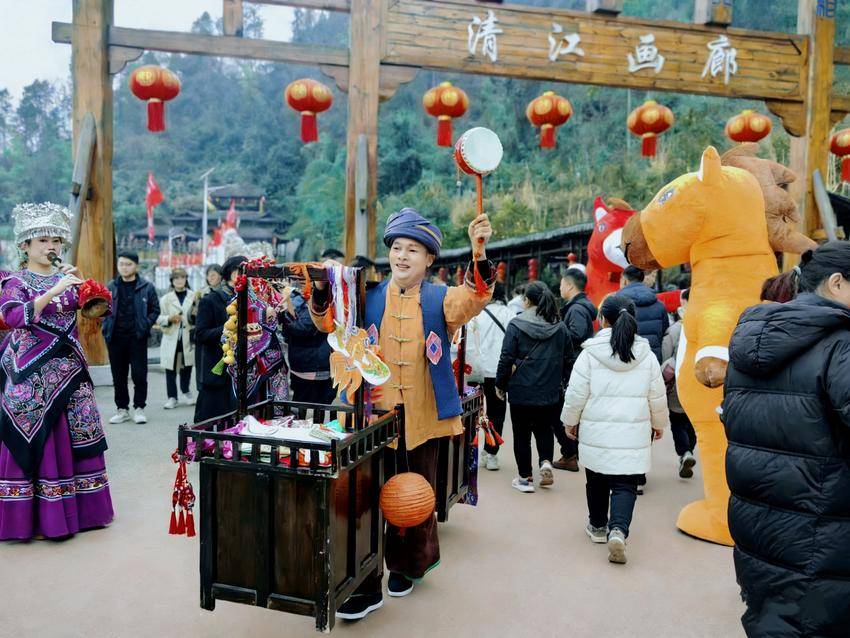 “土家寻福记·马年新春游园会”是今年春节景区的重头戏,传统民俗与现代创意交织,为游客带来沉浸式体验。