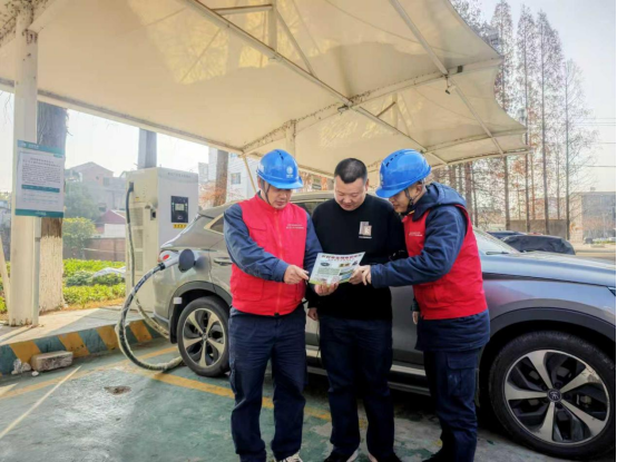 除了保障充电顺畅,服务站还将安全宣传融入服务全过程。“充电时记得要熄火,不要在充电桩附近堆放易燃物,充完电后要盖好充电口盖子,防止雨雪进入。”队员们在引导车辆的同时,向车主发放“春节安全充电温馨提示”宣传单,现场讲解冬季充电注意事项和应急处理方法,提醒大家规范操作、安全用电。