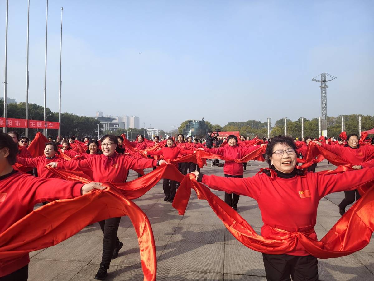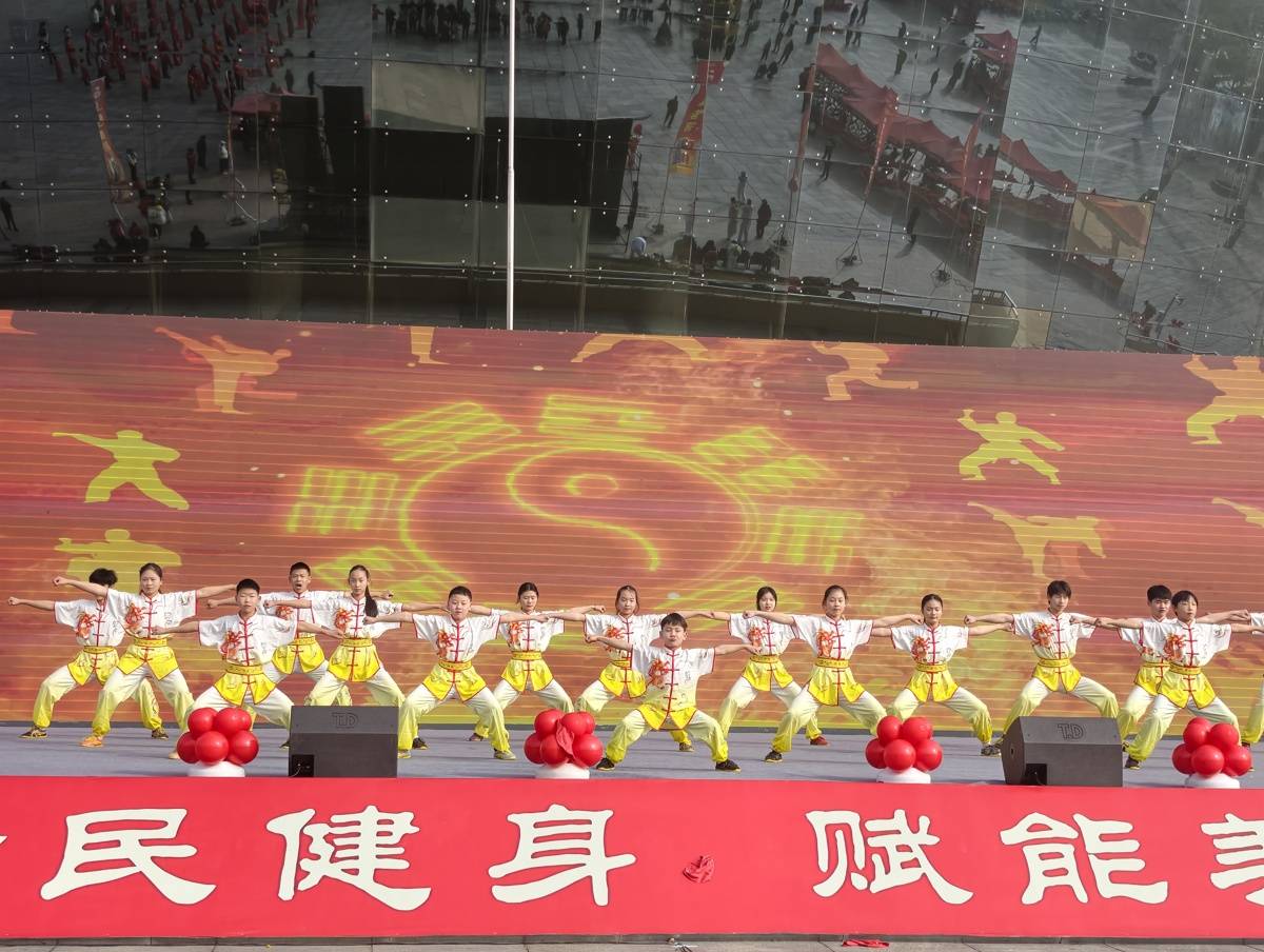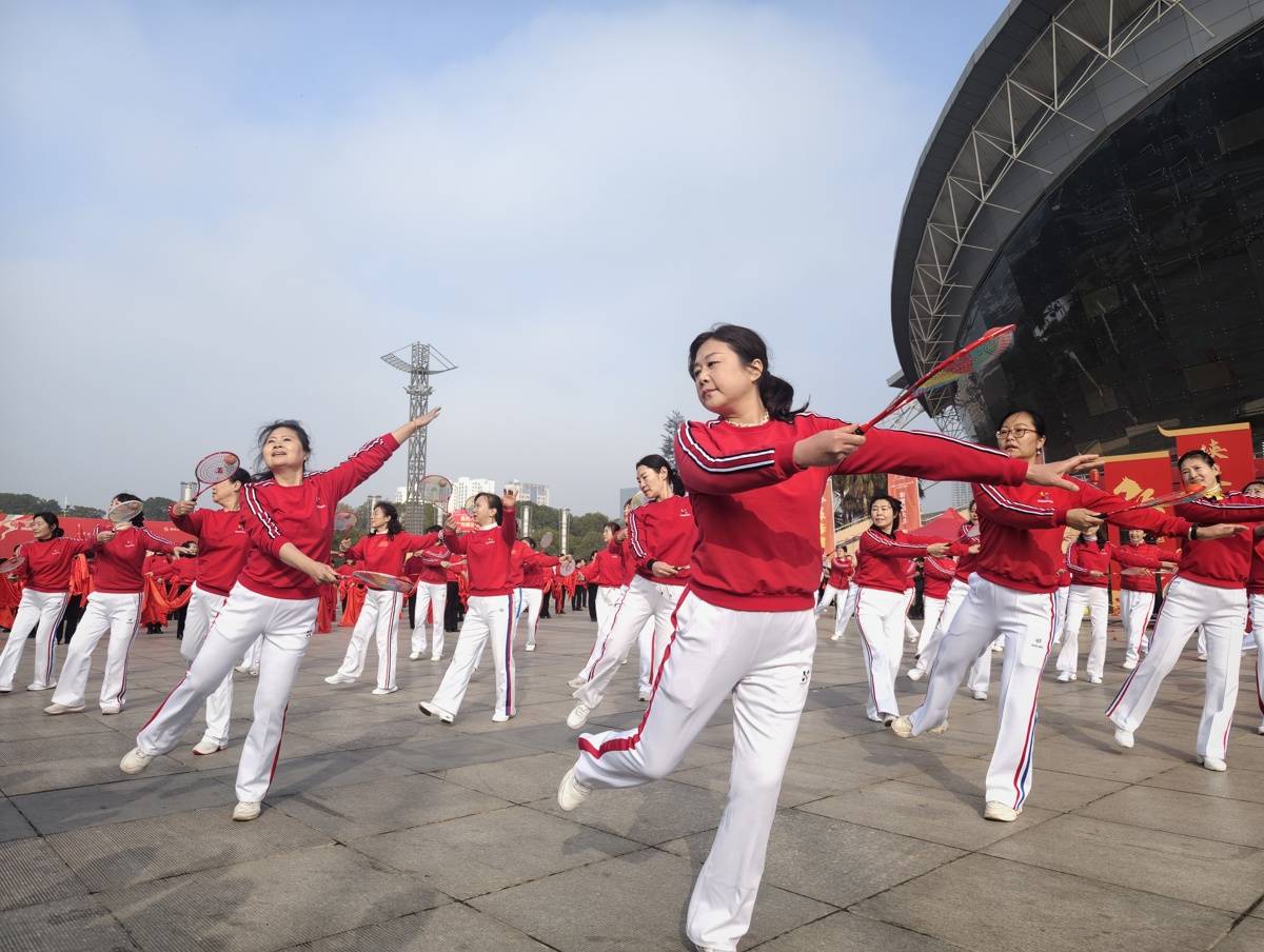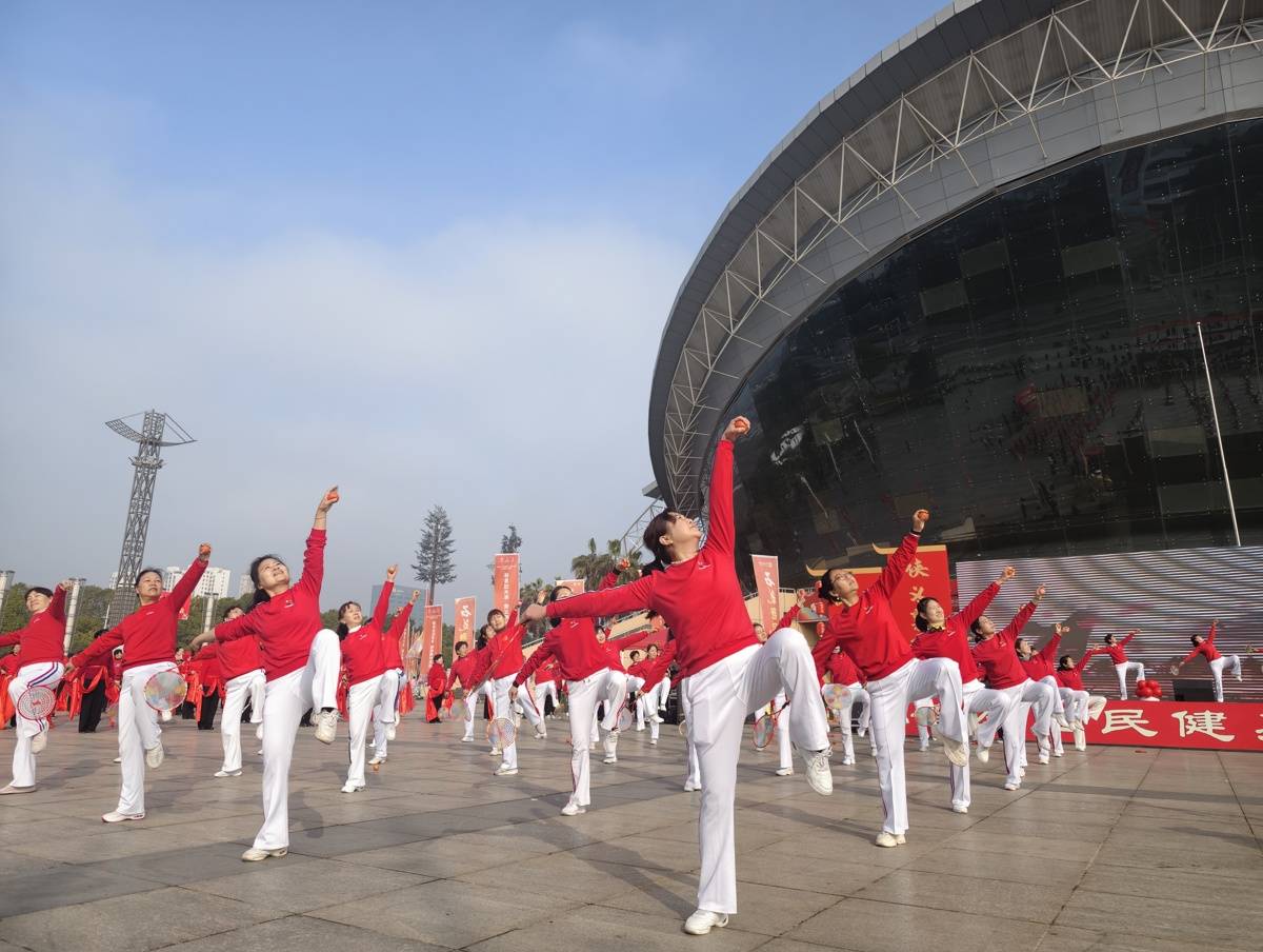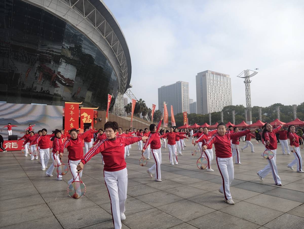 柔力球、传统武术展演轮番上阵,刚柔并济间展现出全民健身的丰硕成果;最后登场的广场舞串烧,数百名健身爱好者同台起舞,舞步整齐、热情洋溢,将现场氛围推向高潮。