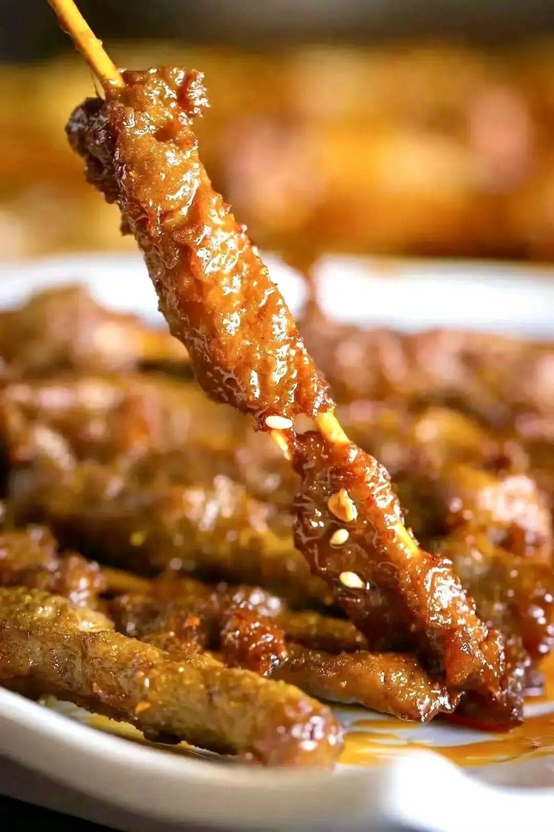 招牌肉串几乎每一桌都会点上十几串,淋上秘制油泼辣子,香而不辣;炸凤爪提前卤制,炸后外皮焦脆、内里软糯,一嗦脱骨,飘香几十米。