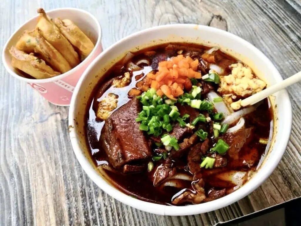 手工厚切的牛腱子肉,不规则的块状裹满汤汁,鲜嫩多汁、越嚼越香;面条选用古早味“叶子面”,·筋道爽滑,吸饱红油汤汁,每一口都藏着真材实料。店里还有难得一见的手工湖南米粉,搭配牛肉牛杂三拼,牛筋Q弹、牛肉软烂,浓醇牛骨汤裹着粉香,一口解锁宝藏滋味。