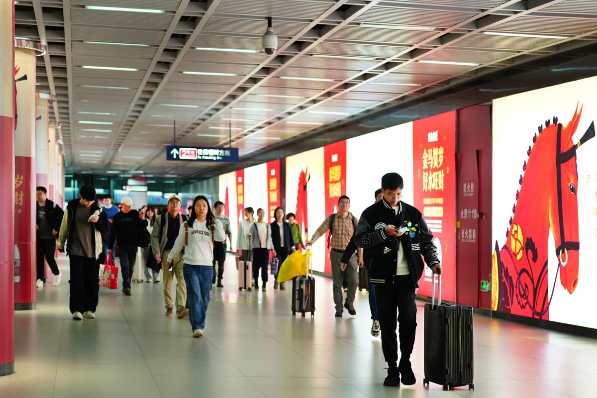 随着2026春节9天超长假期接近尾声,地铁客流逐步回升。2月22日、23日,旅游返汉、返校返工的市民、外地学生及务工人员持续增多,武汉地铁连续两天针对返程需求旺盛的2号线、4号线采取增投运力、延时运营、加开“大站快车”临客的举措,以便相关群体乘客便捷出行。