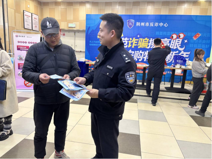 2月11日,荆州市公安局反诈中心联合湖北省体育彩票管理中心荆州分中心、湖北银行荆州分行,在吾悦广场永辉超市共同开展“防诈骗擦亮眼·购物迎新年”主题公益宣传活动。本次活动以接地气的语言、生活化的视觉设计,将金融安全、反诈禁赌与责任彩票理念送入寻常百姓家。