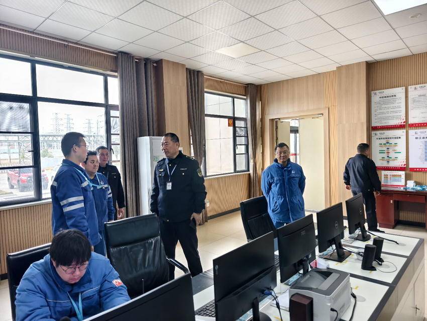 在油库中控室,刘刚一行详细了解了油库春节值守、复工复产、运输安全管理、码头成品油接卸等工作,听取了油库相关情况汇报。刘刚对油库提前停止休假、组织拉网式安全排查、加密巡查频次、强化联防联控等工作给予高度赞扬,叮嘱大家一定不能掉以轻心,要持续全方位强化安全管理工作。