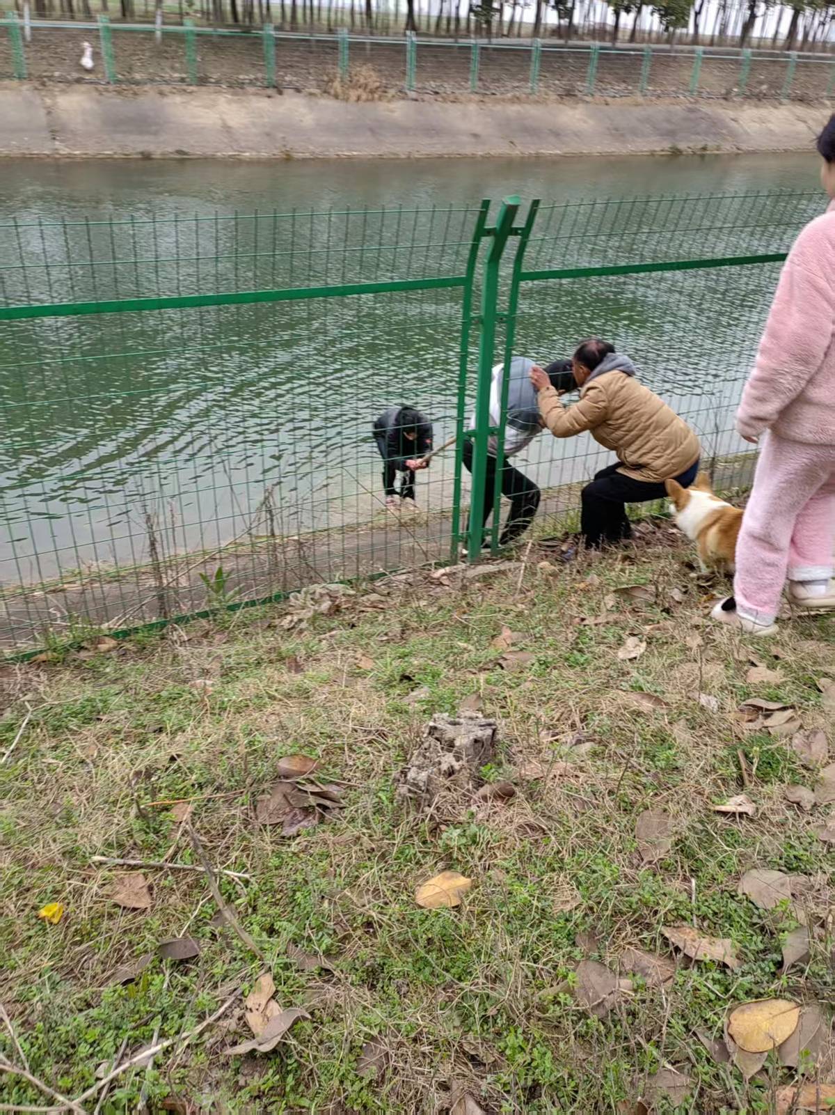危急时刻,有着丰富巡查值守经验的周成兵、谢忠军没有慌乱,一人快步冲向附近值守点,就近取来救援竹竿,另一人快速靠近渠道防护网,俯身紧盯水中少年的位置,精准锁定施救点位,同时大声呼喊,不断鼓励少年保持清醒、坚持住、配合救援,缓解其恐慌情绪。短短几分钟内,少年已被水流冲至生产桥右岸下游约30米处。两人默契配合,将竹竿稳稳递到少年手中,周边群众也迅速赶来支援,在众人的合力救援下,少年很快被安全救上岸。