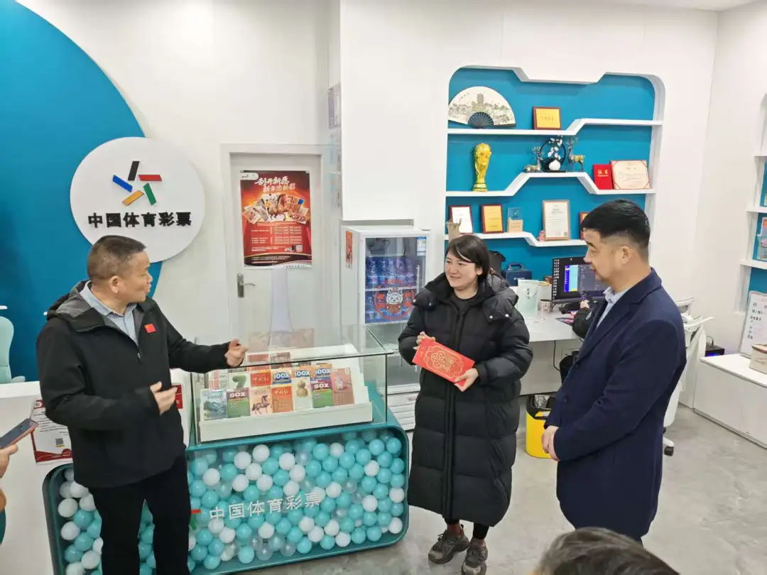 荆门市文旅局副局长陶伟与荆门分中心负责人一同走访城区体彩销售门店,为坚守岗位、率先复工的代销者们送去真挚的马年新春祝福,递上满载好运与期许的开市红包,向大家致以最诚挚的问候与敬意。
