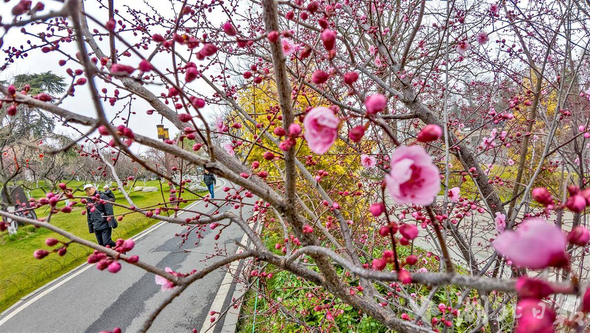 红梅仍在枝头盛放,暗香浮动,早樱也悄然缀满枝头,粉嫩的花瓣点缀其间,与红梅相映成趣,构成一幅错落有致的春日画卷。