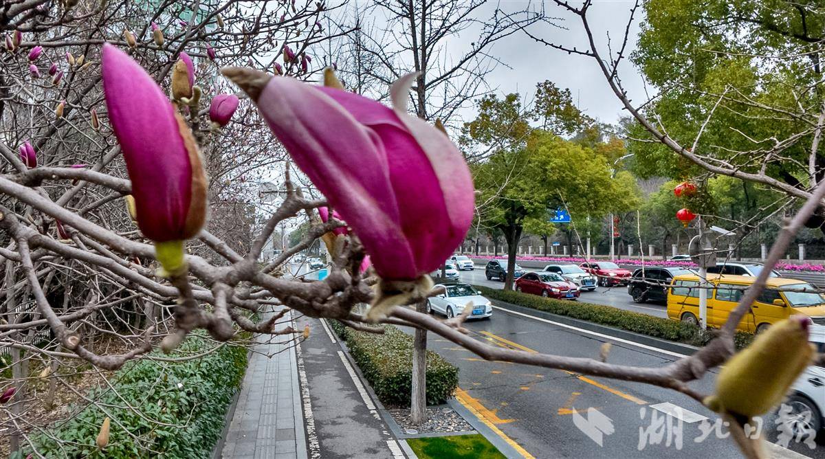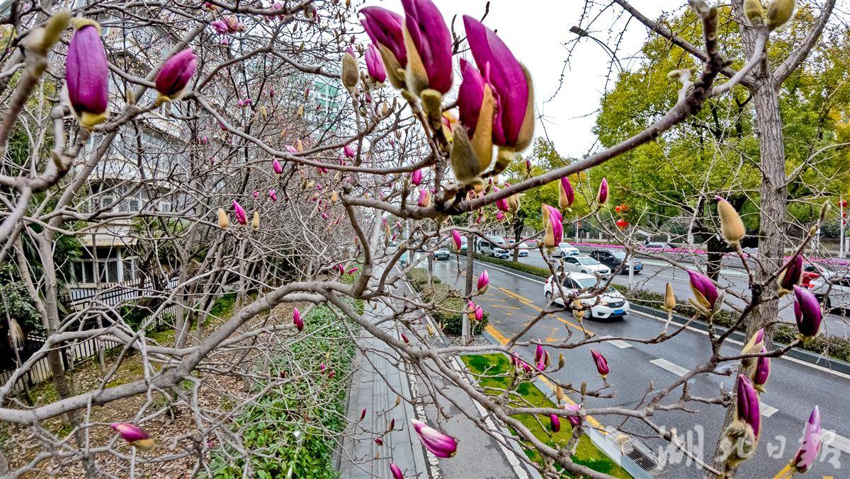 玉兰花缀满枝头,花苞饱满圆润,蓄势待放,仿佛下一刻便会悄悄绽放出洁白或淡紫的花瓣。