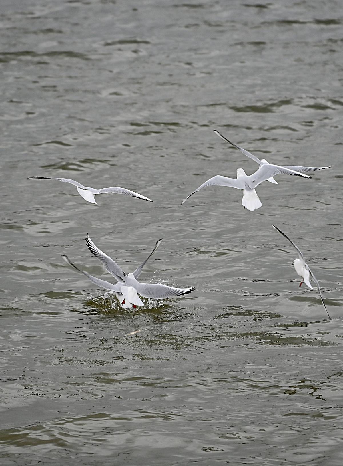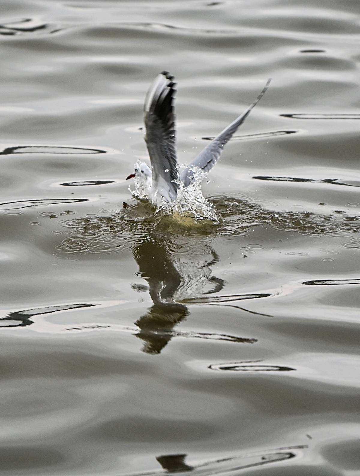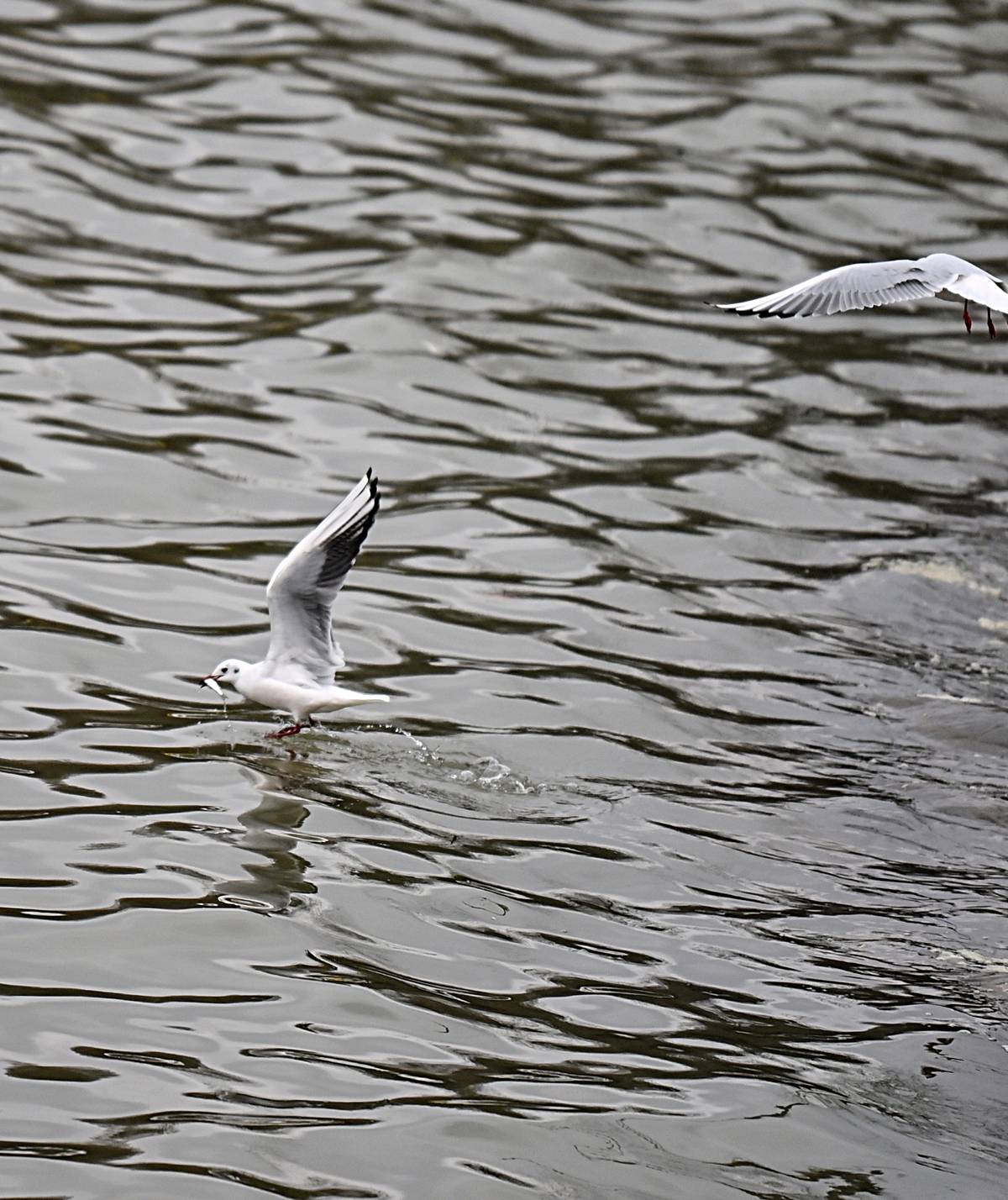 2月26日,武汉喻家湖中,许多海鸥几乎贴着水面飞翔,它们的眼睛紧紧盯住水面,发现冒头的小鱼便俯冲下去,精准抓住鱼。海鸥的捕鱼技巧,在镜头里留下精彩瞬间。(湖北日报全媒记者 朱熙勇 摄)