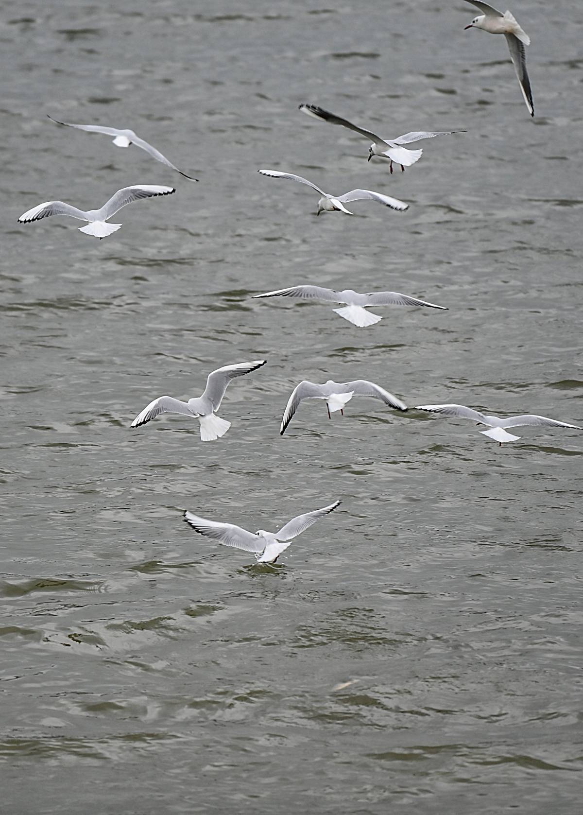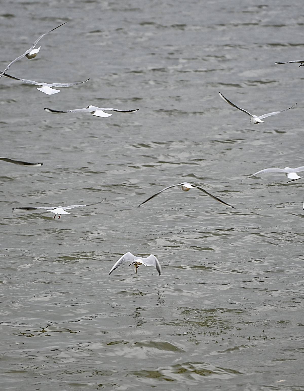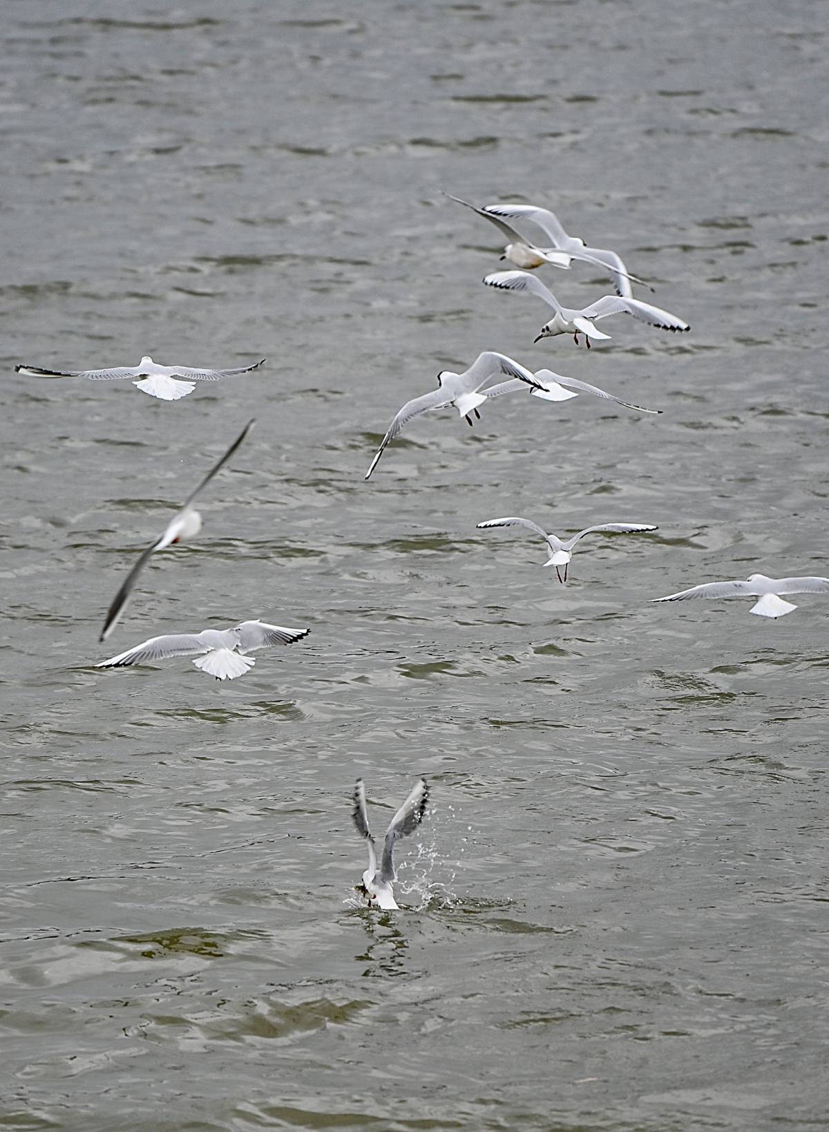 2月26日,武汉喻家湖中,许多海鸥在捕鱼。