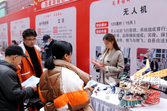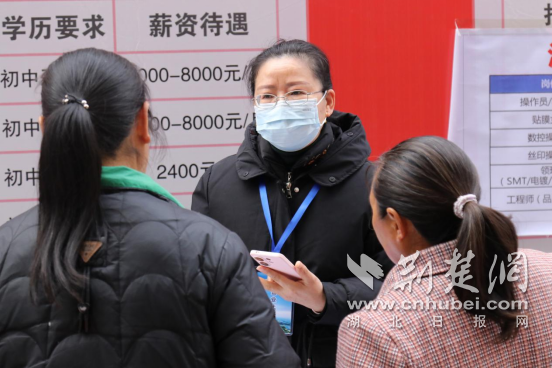 工作人员为参加招聘会的人员进行政策讲解。李田瑞 摄