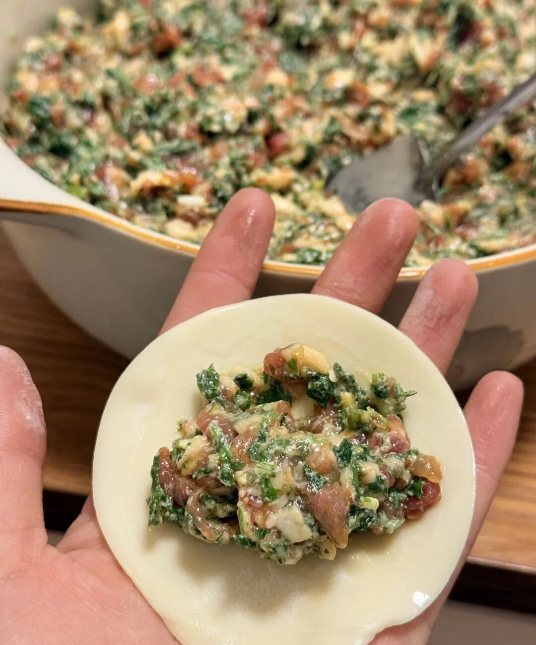 还有荠菜饺子,罗田人叫它“地菜饺子”,田埂间的荠菜切碎,拌上鲜美的土猪肉,皮薄馅足,一口咬破,山野的清苦与肉香碰撞,是刻在骨子里的乡野滋味。